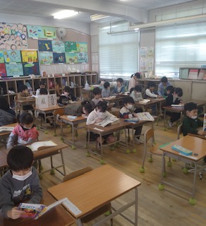 毎週水曜日の朝の時間は「読書タイム」です。開始時は始業の準備でみんなバタバタしてますが、だんだんと落ち着いて読書を始める子が多くなっていきます。