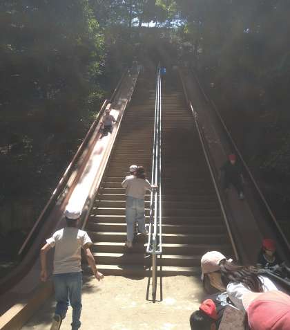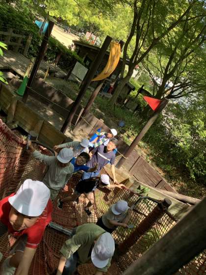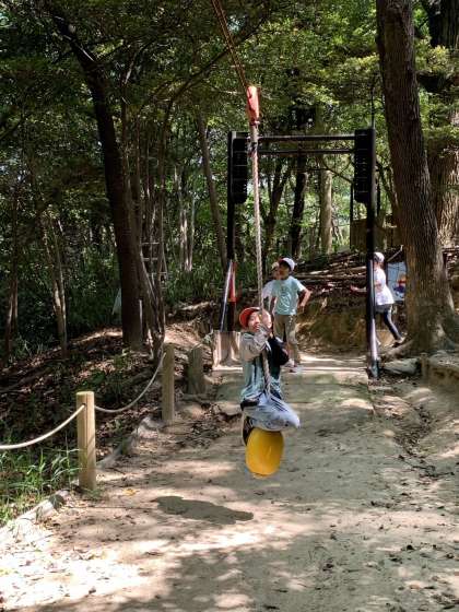 昼からは温室植物園見学、巨大すべり台、子どもの森冒険コース(アスレチック)を楽しみました。