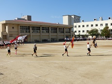 昨日から全体で、入場行進・開閉会式・ラジオ体操・応援合戦等の練習をしています。入場行進で足並みを揃えることや、開閉会式での隊列を整えること等の課題もありますが、子どもたちは秋晴れの下、一生懸命に頑張って練習しています。