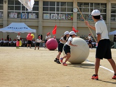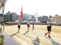 9時に開会式が始まり、準備運動・応援合戦と続き、3年生の個人走「ゴールを目指せ!」で競技がスタートしました。