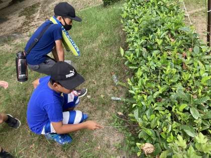 2時間目に十八条公園で虫探しをしました。「アリやチョウしか見つからないかな?」と少し心配していましたが、とんでもない! ショウリョウバッタ、ササキリ、カマキリなどいろいろな昆虫に出会えました。