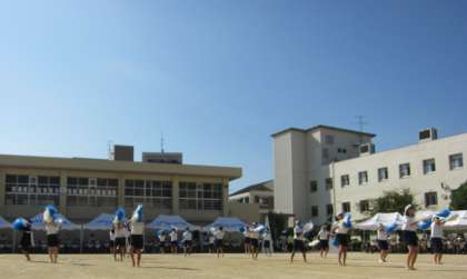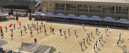 応援合戦では、歌ありダンスありと、団員たちが全力のパフォーマンスを繰り広げます。全校児童も皆、お互いの健闘を祈って大きな声で応援をしていました。