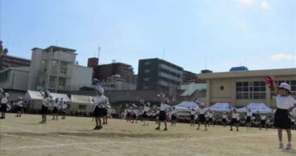 1年生の団体演技は 「シャッター チャンス!」です。手にキラキラのポンポンをつけて踊りました。YOASOBIの「アドベンチャー」の曲に合わせ、シャッターを切るポーズが決まっていました!