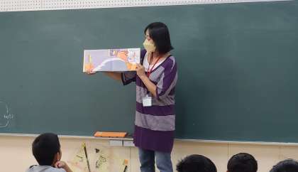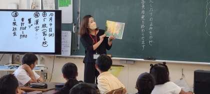 4年生では、「がんばれ!! まけるな!! ナメクジくん」「9月のなぜなぜ」「うみにしずんだおに」「ぐんぐんせがのびるひみつ」を聞かせていただきました。