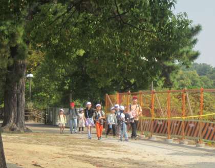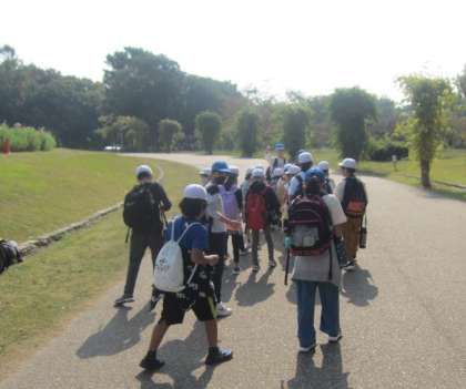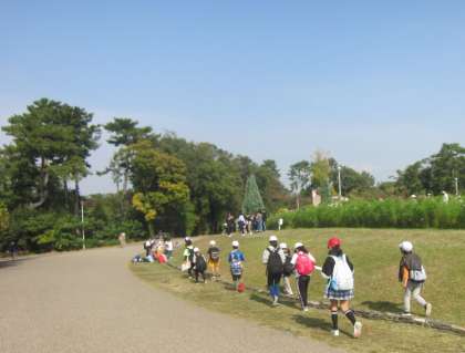 天気の崩れが少し心配されましたが、秋晴れの好天に恵まれて、服部緑地公園で秋の遠足「全校オリエンテーリング」を実施しました。