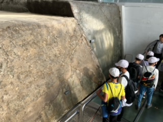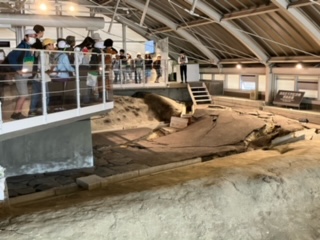 北淡震災記念館で、阪神淡路大震災でずれた野島断層や、傾いたまま保存されている家を見学しました。