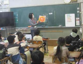 2年1組は「かぼちゃのスープのおふろ」と「ながぐつをはいたねこ」、2組は「おにじゃないよおにぎりだよ」「とうさんはタツノオトシゴ」「いちにちおもちゃ」を読んでもらいました。みんなにこにこと楽しそうにお話を聞いていました。