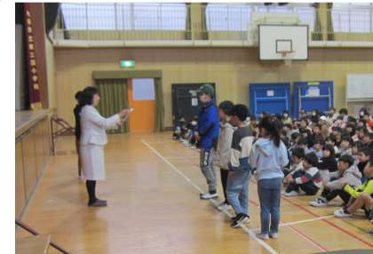 今日の児童朝会の校長先生のお話は、阪神淡路大震災についてでした。災害等で家族と離れ離れになった場合、どこで待ち合わせるかなど、家族での話し合いをしておきましょうという宿題を校長先生が出されました。ご家庭でも、ぜひ、話をする機会を設け、万が一に備えておくようにしてください。