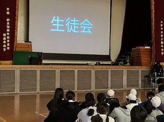 6年生が東三国中学校へ行き、授業を体験し、生徒会の説明を聞きました。