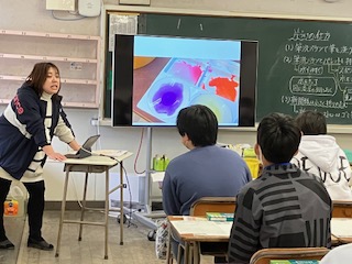 体育、美術、英語の授業を体験しました。新東三国小学校の6年生と交流できた授業もありました。
