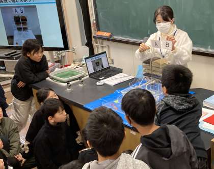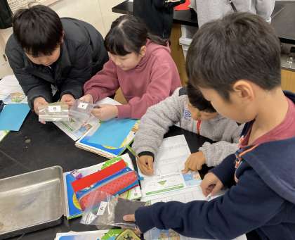 2種類の土を触って違いを見つける体験では、土の重さや色、触り心地などさまざまな違いを見つけ、それぞれの気づきを発表しました。