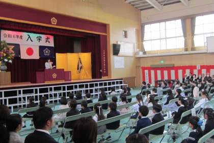 校長先生の話を聞いたり、PTA会長さんや地域活動協議会会長さんからお祝いの言葉をいただいたりしました。「ご入学おめでとうございます。」の言葉に、「ありがとうございます。」と返す返事がとても元気でした。