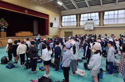校歌を元気よく歌った後、校長先生の話を聞きました。始業式の校長先生の話は「すきになってほしいもの3つ」でした。
