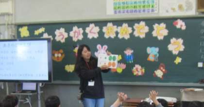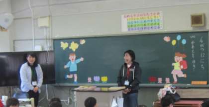 1−2…「はじめてのともだち」「えんとつそうじやのハリネズミ」「からすのパンやさん」「いけいけしょうがくいちねんせい!」「いろのかくれんぼ」「大きなカブ(英語バージョン紙芝居)」「いろのかくれんぼ」口々に感想を伝えたり、英語のセリフを教えてもらったりしたようです。