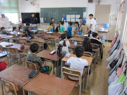 木曜日の朝は、児童集会です。いつもは、集会委員会の人が、みんなで楽しむことのできるゲームを考えて進めています。その時に集まるのが、たてわり班です。全校児童を36班に分けて活動します。今日は、本年度初めて、たてわり班で集まりました。