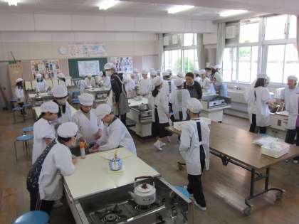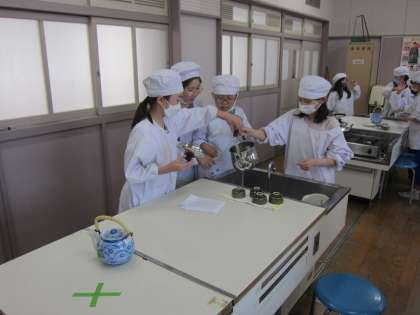 家庭科室で、5年生が家庭科実習「こんろを安全に使い、湯をわかして、お茶を飲もう」の学習をしました。
