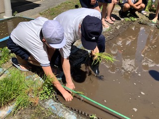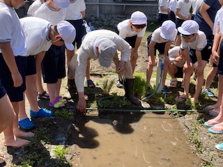 5年生の子ども達が、地域の皆さんに教えていただきながら田植えをしました。