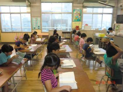 10月9日(水)今朝は読書タイムです。台風の影響で雨が降っているので運動場では遊べません。朝だけでなく今日は休み時間は静かに読書で過ごすのもいいかもしれません。集中して本を読んでいる姿は素敵です。