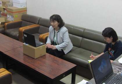 今朝は、あいにくの雨模様です。月曜日朝の児童朝会が、リモートで行われました。