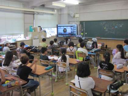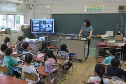 校長室のパソコンから呼びかけます。校長先生の「おはようございます」に返事する声が、校舎に響いていました。今朝のお話は、たてわり班活動についてでした。高学年のリーダーシップ、低学年のフォロワーシップ、それぞれの学年の役割についての内容でした。