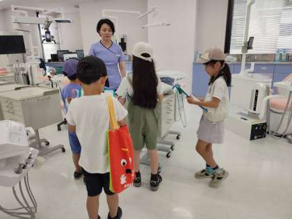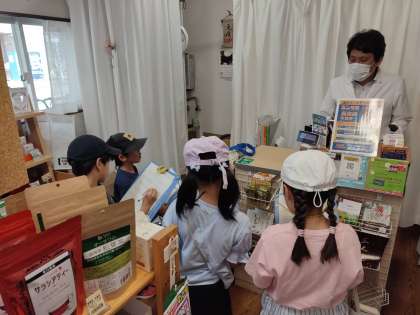 3、4人のグループで、たんけんしました。交番、郵便局、東三国センター、保育園、病院、コンビニ、薬局、歯科技工士専門学校、お米屋さん、動物病院など東三国地域の16か所のうち2か所を回ってインタビューしてきました。