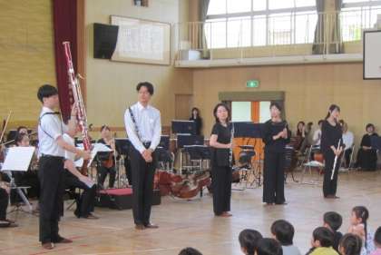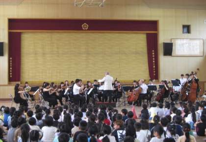 木曜日の3・4時間目に、「アマービレフィルハーモニー管弦楽団」による音楽鑑賞会がありました。