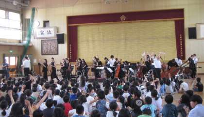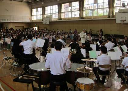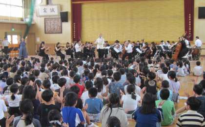 最後は、校歌オーケストラバージョンです。オーケストラの伴奏に合わせて、みんなで気持ちよく歌いました。