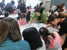 家庭科室では、東三国小学校生涯学習ルームの橋本さん、冨永さんによる「スイーツデコ」の講座が開催されました。透明な容器のふたの部分に、様々なデコレーションをほどこします。まるでケーキのように仕上がった作品に子どもたちも大満足でした。