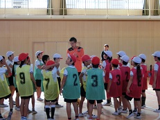 体育館では、シュライカー大阪アンバサダーの瀬戸さんと、アシスタントコーチ2名による「フットサル教室」が行われました。以前に全学年の児童を対象に実施した内容よりも更に進化した内容で、必死にボールを追いかける子どもたちの姿が印象的でした。