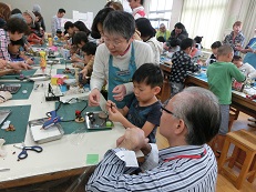図工室では、恒例の「一休さんの自然工作教室」が開催されました。低学年の講座では、ほとんど親子教室のようになり、多くの人で賑わいました。自然の物を材料にして作った作品は、とてもあったかい感じがしました。