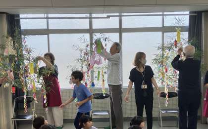 短冊に書いた夢を聞いてもらい、笹飾りに飾ってもらいました。