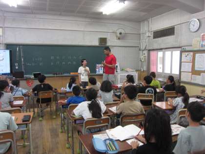 毎週金曜日には、C−NET(Native English Teacher)のクリス先生が、外国語の授業に参加してくれています。