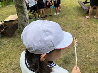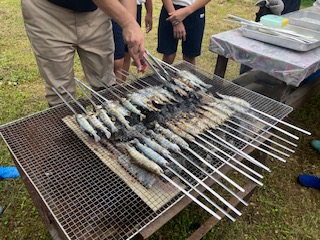 つかんだアマゴを焼いていただき食べました。あちらこちらから「美味しかった!」の感想が聞こえてきました。自分で獲った魚の味は格別だったようです。