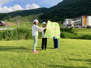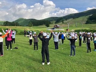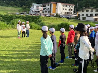 となりの学校に負けないくらい大きな声で朝のあいさつ!体操をして、めあてを確認しました。