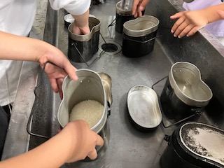 11時20分、いよいよ飯ごう炊さんです。説明を聞いて作り始めました。