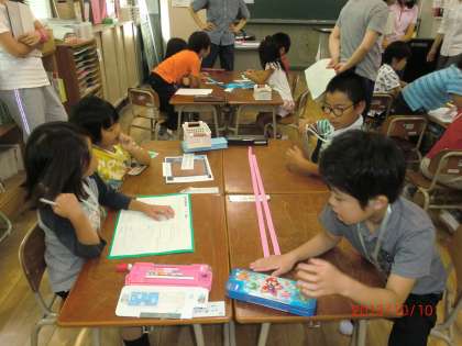 10月10日(木)5時間目に1年1組で算数の研究授業があり、多くの先生が授業参観をしました。子どもたちは多くの先生方に見られていることもあり、とっても学習態度もよく、頑張っていました。グループ活動も、発表もしっかりできていました。学習経験を積み上げていくことで力になっていきます。子どもが帰った後、授業について話し合いをし、よりよい授業ができるように指導助言も受けました。活躍できる、よくわかる子どもたちを育てていきたいです。今日は目の愛護デーです。子どもをしかっり見ていく教職員になります。