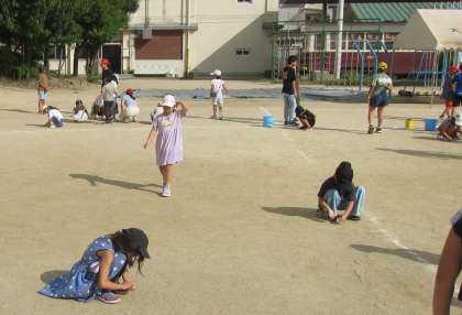 運動会に向けて、運動場に落ちている小石をみんなで協力して拾いました。