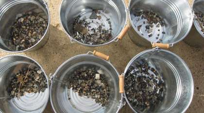 木曜日の朝、児童集会の時間を使って、「石拾い活動」に取り組みました。