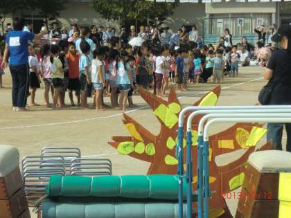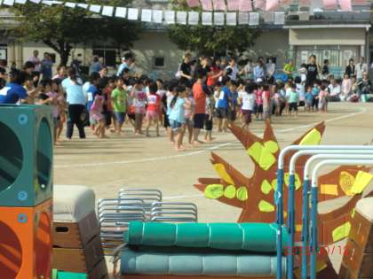 10月12日(土)学校の近くにある保育所の運動会が本校の運動場で行われています。何度か学校の運動場に練習に来ていましたが、保育所の子どもたちは少しの距離を走るだけでもこんな素敵な時期があったことを思い出させてくれます。今はとっても小さい子どもたちも未来の小学生です。何年か後には本校に入学してくる子どもたちもいます。いい子に育ってほしいと思います。運動場の感触、学校の空気、しっかり味わってね。将来、待ってるからねー。