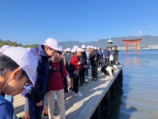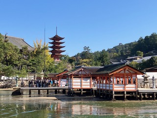世界遺産の厳島神社を見学しました。一部工事中だったのが残念でした。