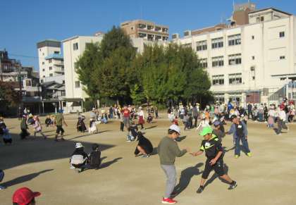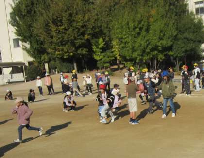 めあてが「班の友だちの名前をおぼえよう!」ということで、前回の勝ちぬきじゃんけんでは、友だちを助ける方法はタッチだったのですが、今回は、助ける時に相手の名前を呼ぶというルールが追加されました。