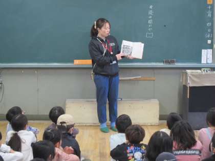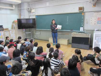 第1水曜日の朝は、「読み聞かせ」の時間です。ボランティアの皆さんが、各学級で絵本や紙芝居を読んでくださっています。