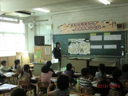 今日の学習参観は新1年生保護者の学校公開も兼ねています。小さいお子さん連れの保護者の方も来られていました。5時間目の授業終了後にはフォニックス(英語音声指導)も保護者にみてもらいました。DVDにあわせて一緒に英語の発音をして楽しんだ学級もありました。学習参観後の懇談会は学級によって多い少ないはありましたが、保護者の参加が少な目だったのが少し残念でした。玄関には学校でなったザクロとカリンを並べておき、希望する方に持って帰ってもらいました。それも少しだけでした。「少し」ばっかりでごめんなさい。