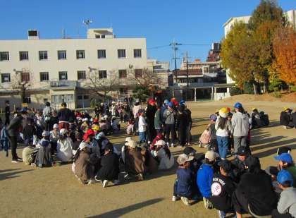 12日(木)の児童集会は、「学校へ行こうよ!」でした。教室にある文房具の文字数の人数で集まるゲームです。「えんぴつ」なら、4人で集まって座ります。