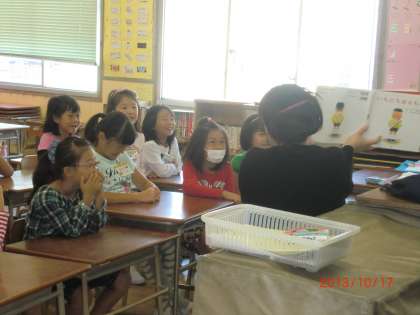 10月17日(木)今朝はPTAによる読み聞かせがありました。低学年の教室をのぞいてみると、絵本に食いついている子どもの多いこと。「きゃー、こわいよー」絵本をみてちょっとうれしそうに怖がる子どももいます。思わず「静かに」と注意する子どももいます。「もっと読んで」とリクエストするので、数冊の絵本を用意してくださっている読み手の保護者の方には頭が下がります。1冊の少し読みごたえのある絵本をじっくり読んでくださるのも、短い絵本を次々読んでくださるのもうれしいことです。子どもが自分で興味を持って本の世界に浸れるように環境を整えていきたいです。今日もさわやかな一日が過ごせそうです。ありがとうございました。