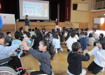 民族学級の先生、老師(ラオシー)に来ていただき、1・2年生が中国の文化を教えていただきました。