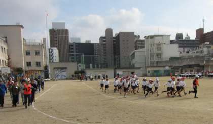 先週の「なわとび週間」に引き続き、17日(月)までの「かけあし週間」が始まりました。