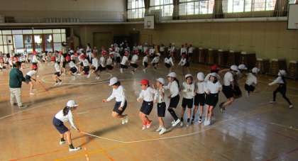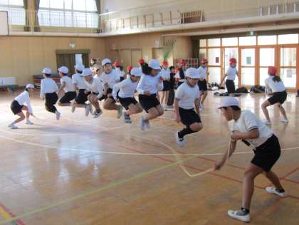 2時間目に、3・4年生が「なわとび週間」のまとめとして、「大繩大会」に取り組みました。