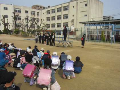 始業式では、元気よく校歌を歌った後、校長先生から担任の先生方の紹介がありました。