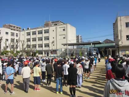 月曜日の朝です。「児童朝会」がありました。